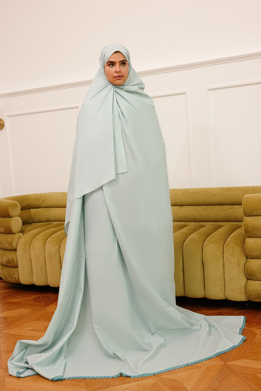 A traditional Emirati sheila — crafted as an open, free-flowing fabric with delicate crochet detailing along the edges. Designed in a free size to fit most, it combines the timeless elegance of Emirati heritage with a soft, handmade touch that makes every piece unique.